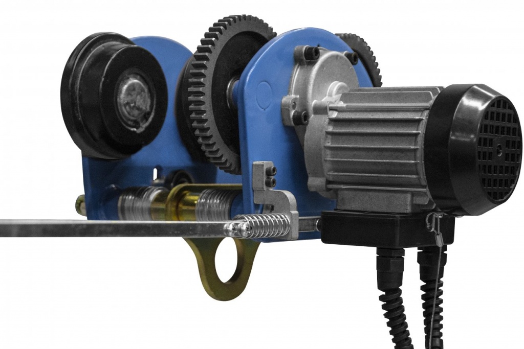 Elektrická jeřábová kočka, určená k horizontálnímu přesouvání řetězových kladkostrojů/lanových zvedáků se zavěšenými břemeny