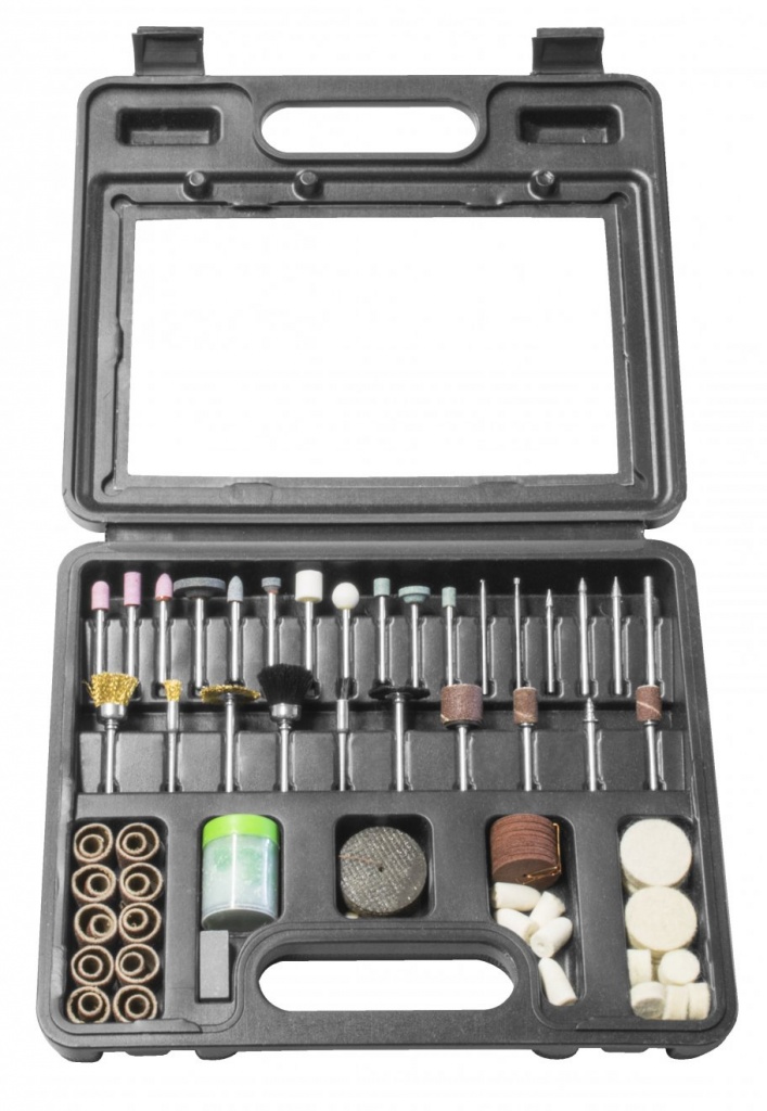 Klidný chod bez vibrací, dlouhá životnost (hřídel motoru Ø 10 mm s kvalitními kuličkovými ložisky), karborundové brusné kotouče jemné (zvlášť jemné) zrnitosti - K 120 a K 400.