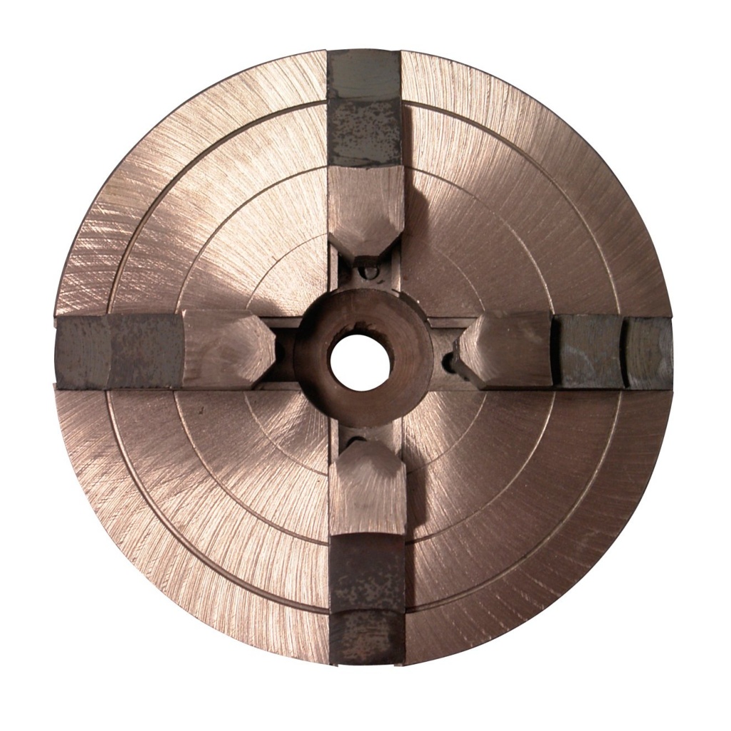 Litinové sklíčidlo s centrálně nastavitelnými čelistmi, určené k upínání obrobků při soustružení, vhodná pro soustruh na dřevo Typ 1000 (00501) a GMD 1000 (11420).